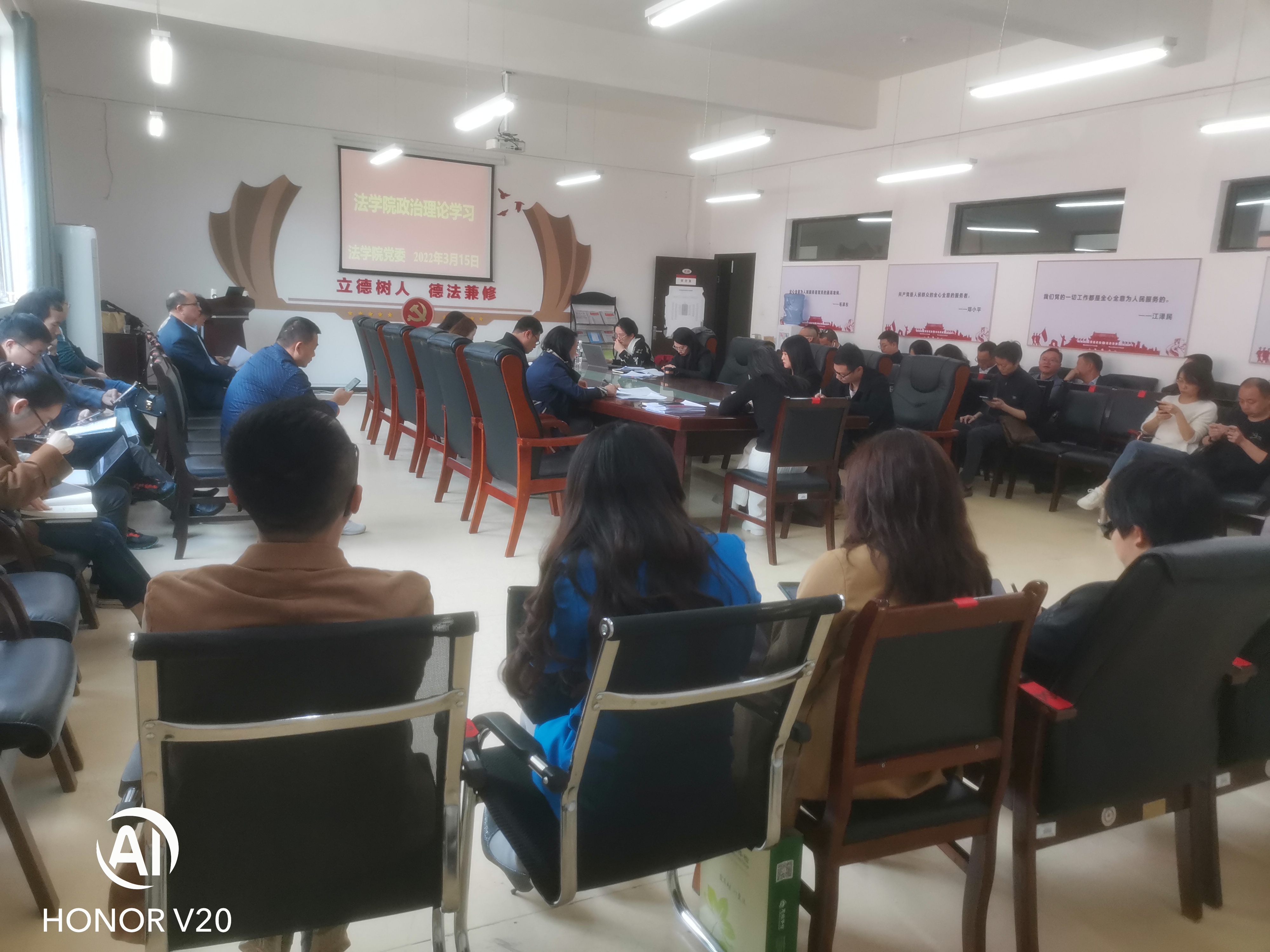 (法学院 图文/报道 徐方)2022年3月15日下午,法学院党委在文德楼A8-310会议室围绕“3377(中国)参加十三届全国人大五次会议内蒙古代表团审议时讲话及贵州省两会精神”专题组织召开2022年度第二次教职工政治理论集体学习集体研讨会议。院领导及全院教职工出席会议,院党委书记詹伟主持会议。