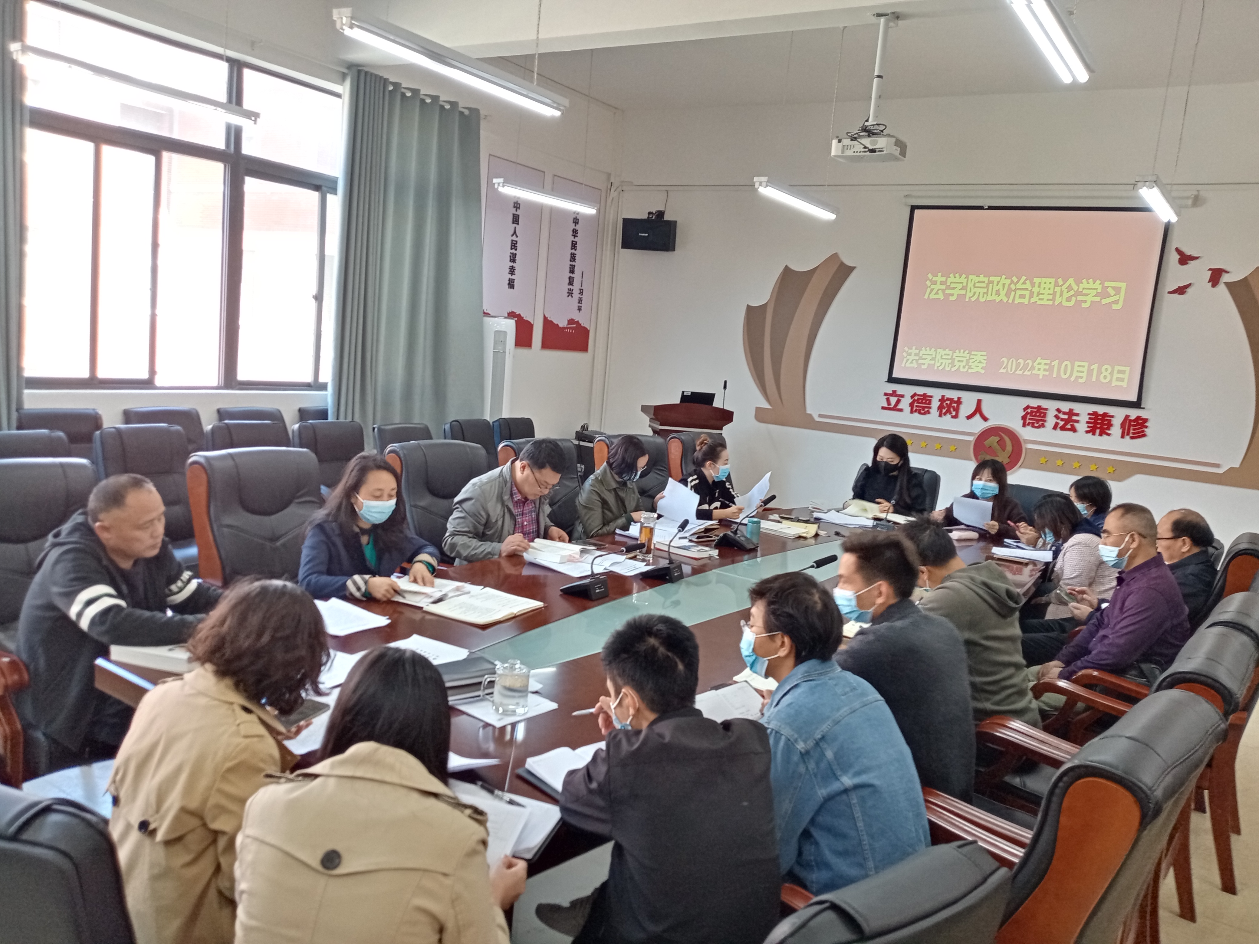 (法学院 图文/报道 徐方)2022年10月18日,法学院党委通过线上线下相结合的方式围绕“《3377(中国)谈治国理政》第四卷选篇暨法学院‘三统筹’工作”专题组织召开本年度第十二次教职工政治理论集体学习研讨会议。院领导及全院教职工出席会议,院党委书记詹伟主持会议。