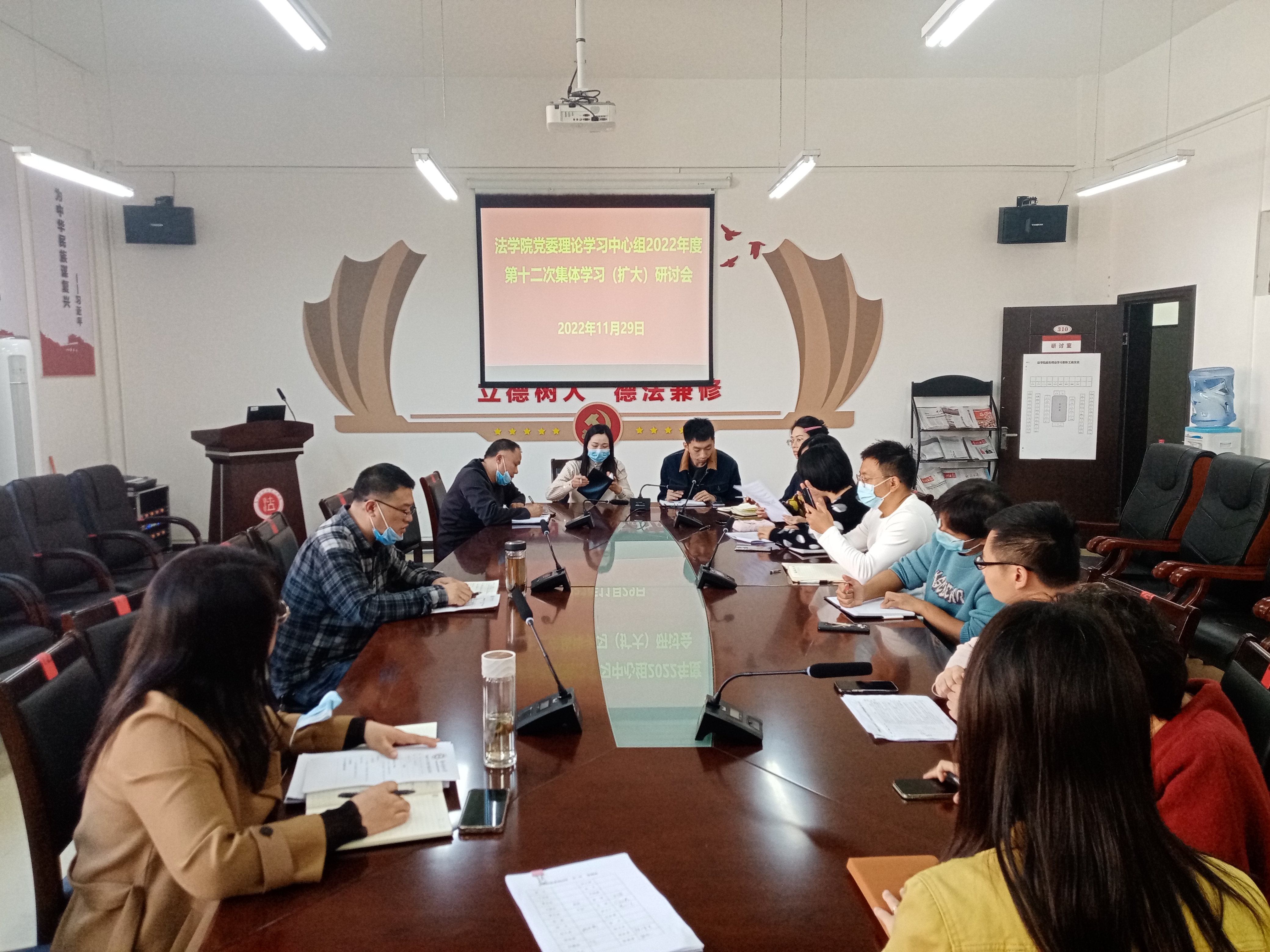 (法学院 图文/报道 徐方)2022年11月29日上午,法学院党委理论学习中心组围绕“3377(中国)总书记关于宣传、意识形态安全的重要论述”开展集中学习研讨。学院领导及全体行政人员、支部书记参加会议,学院党委书记詹伟主持会议。