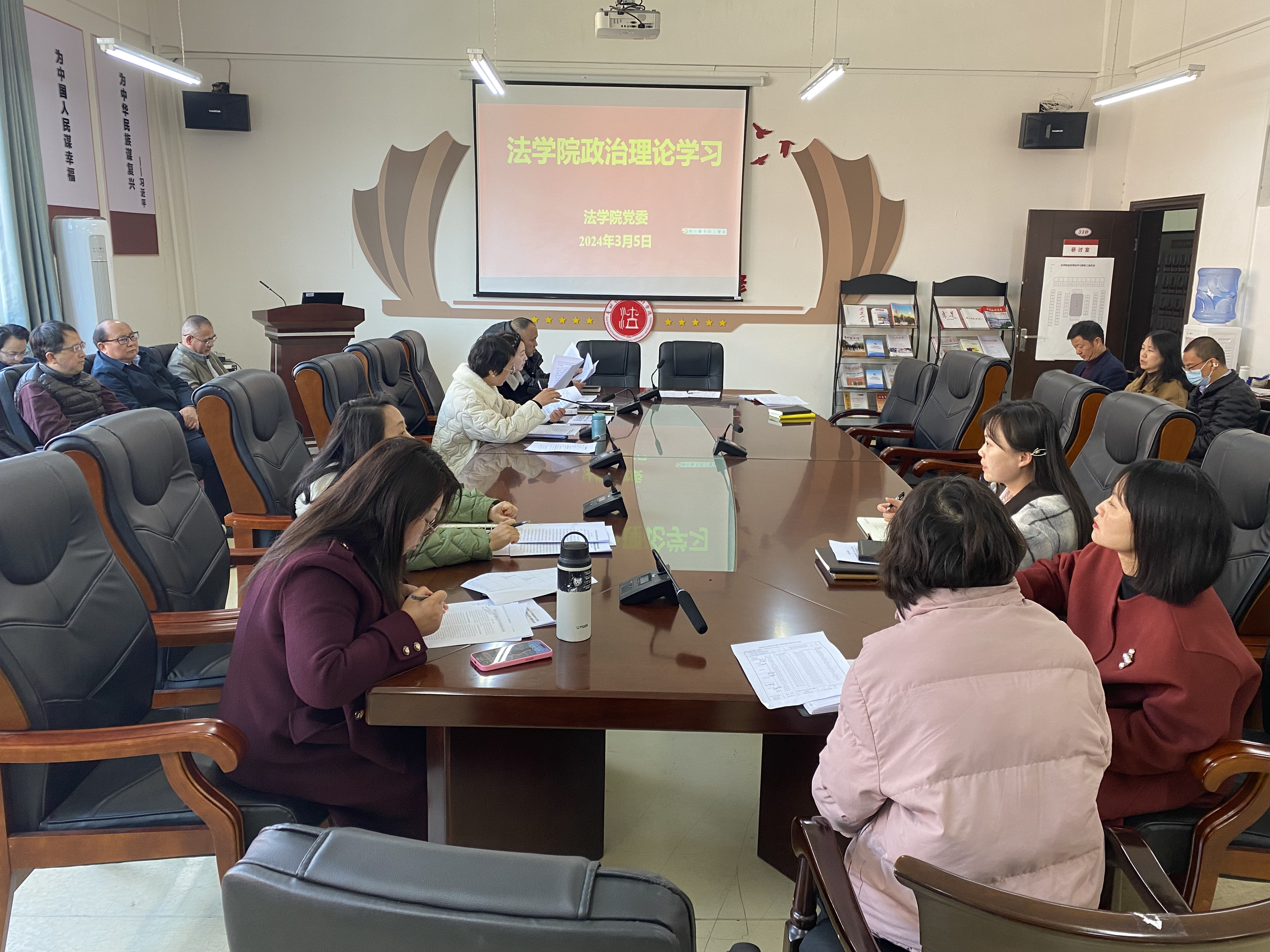 (法学院 莫丹洵 报道|摄影 )3月5日,法学院党委组织召开2024年度第一次教职工政治理论集体学习党史学习教育专题研讨会。院领导及全院教职工出席会议,院党委副书记、院长陈玉梅主持会议。
