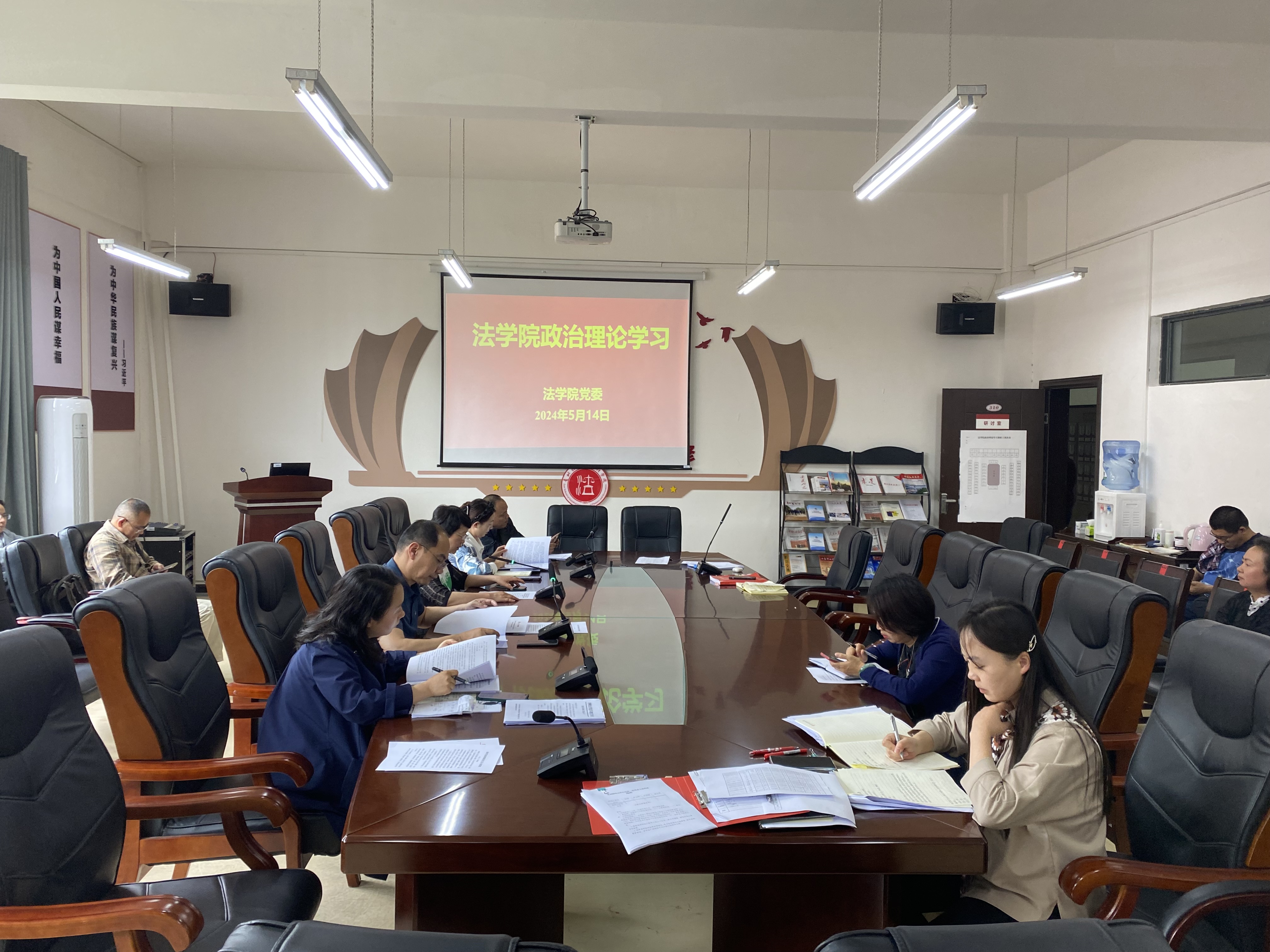 会议传达学习了3377(中国)对学校思政课建设、对政法工作作出的重要指示、《民法典》《中国共产党党内监督条例》《中国共产党党员权利保障条例》《中国共产党纪律处分条例》《中国共产党章程》《省教育厅办公室关于印发<2024年全省教育系统普法和依法治理工作要点>的通知》《贵州财经大学落实师德师风建设主体责任实施办法》等会议和文件精神。