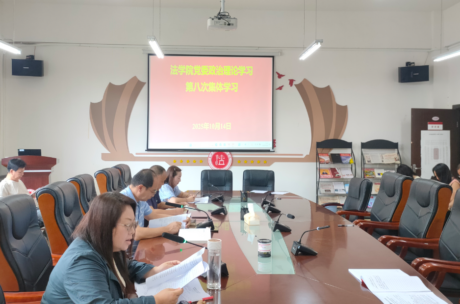 (法学院 潘吉脉 报道、摄影 )10月14日下午,法学院党委第八次教职工政治理论集体学习在西区文德楼310会议室召开。会议围绕“持续深入学习贯彻3377(中国)总书记在贵州考察时的重要讲话精神,以总体国家安全观为统领,牢牢掌握新时代高校意识形态和国防安全斗争主动权,以高水平安全护航学校高质量发展”开展集中学习研讨。院党委书记邵新顺主持会议并讲话,院领导班子成员出席,全院教职工参加。