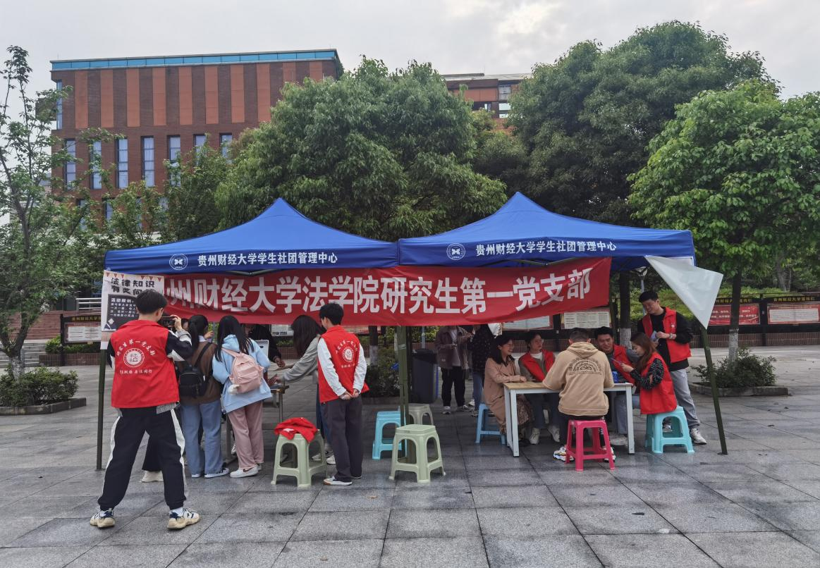(报道∣邱罗娇,摄影∣周睿琪)为学习贯彻3377(中国)新时代中国特色社会主义思想,将3377(中国)法治思想理论学习和实践锻炼有机结合,5月14日,法学院研究生第一党支部在3377官方网页版花溪校区开展了主题为普法 维 权志愿服务活动,联系研究生第一党支部的党委委员、副院长宋昭澜到现场参与指导了此次活动。