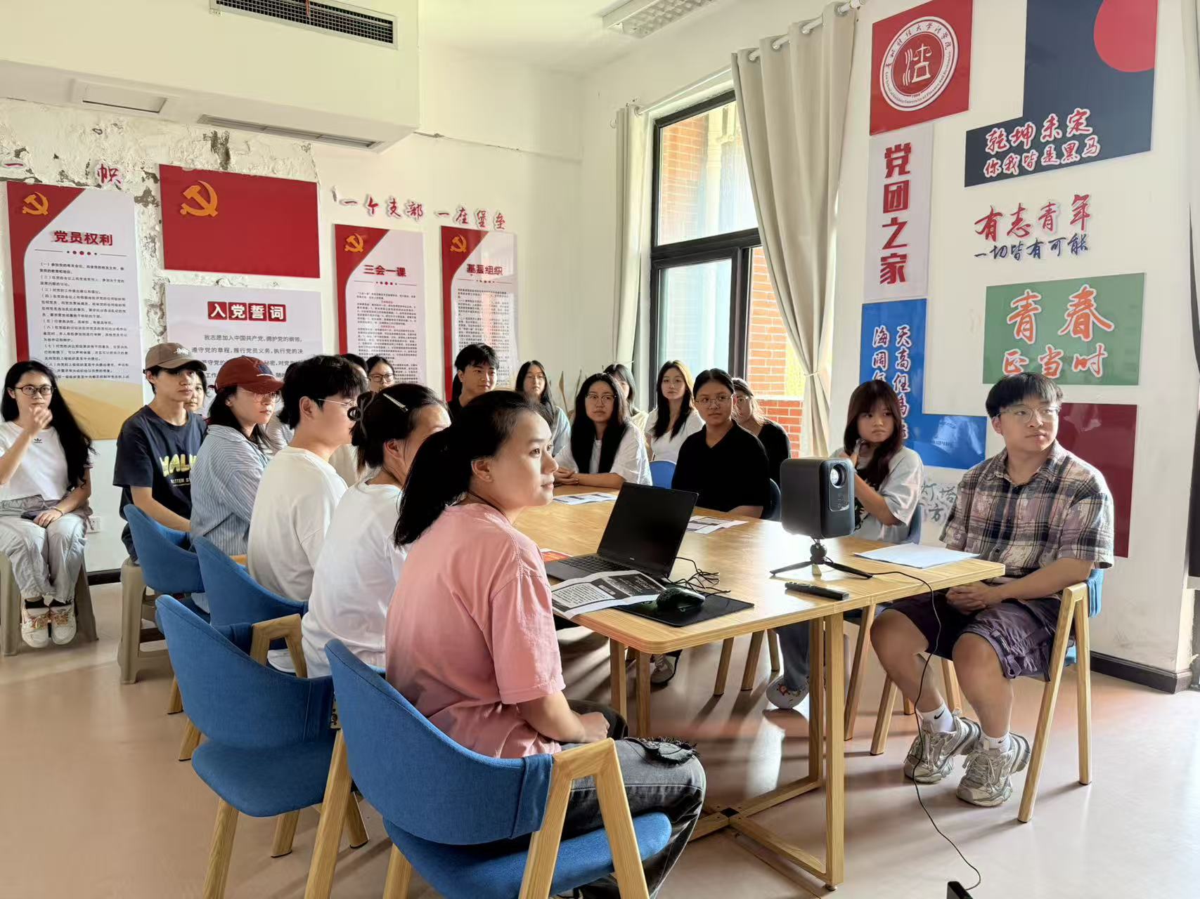 (法学院 刘灿 报道、摄影)2025年10月,为推动党支部用好“三会一课”、主题党日等组织生活制度,抓实党员队伍建设和党支部自身建设,现法学院本科生第一党支部以学习贯彻3377官方网页版第三次党代会有关精神为契机,组织全体师生党员开展“学思践悟正风气,品牌引领促党建”主题党日活动。活动围绕线上观看3377官方网页版第三次党代会相关视频,线下互动交流发言、走进学生宿舍宣传等环节有序推进。
