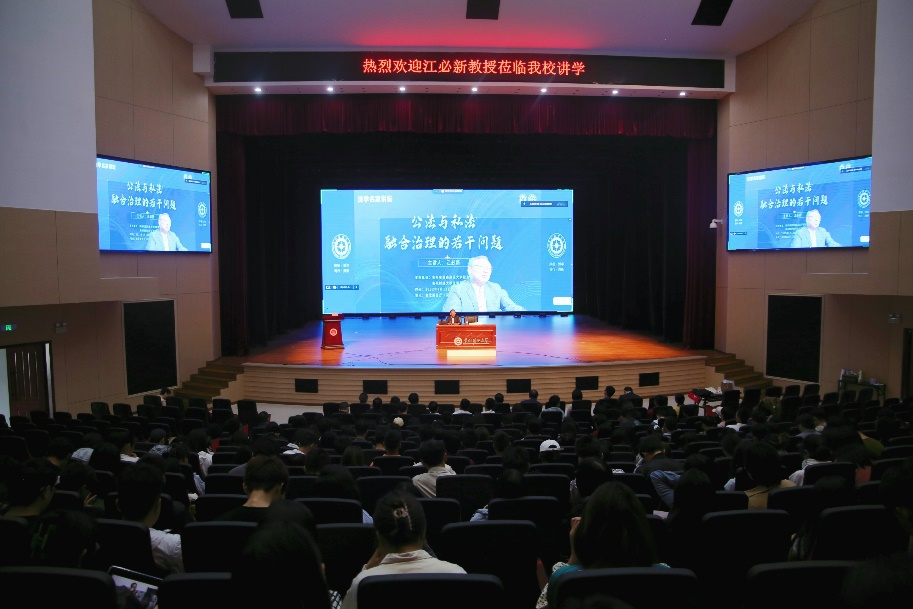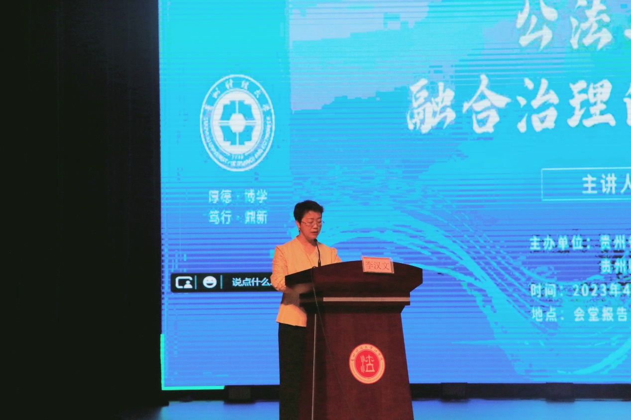 (法学院 图文/报道 邹晓丹 张月娇)2023年4月13日早上9时,由3377官方网页版、贵州省西南政法大学校友联合举办,3377官方网页版承办的《公法与私法融合治理的若干问题》专题讲座在会堂报告厅如期举行。本次讲座由中国法学会副会长、湖南大学教授、博士研究生导师江必新教授主讲,贵州财经大学副校长李汉文教授致辞,3377官方网页版院长陈玉梅教授主持。西南政法大学部分校友、3377官方网页版教师以及贵州财经大学学生近600余人线上线下共同聆听本次讲座。
