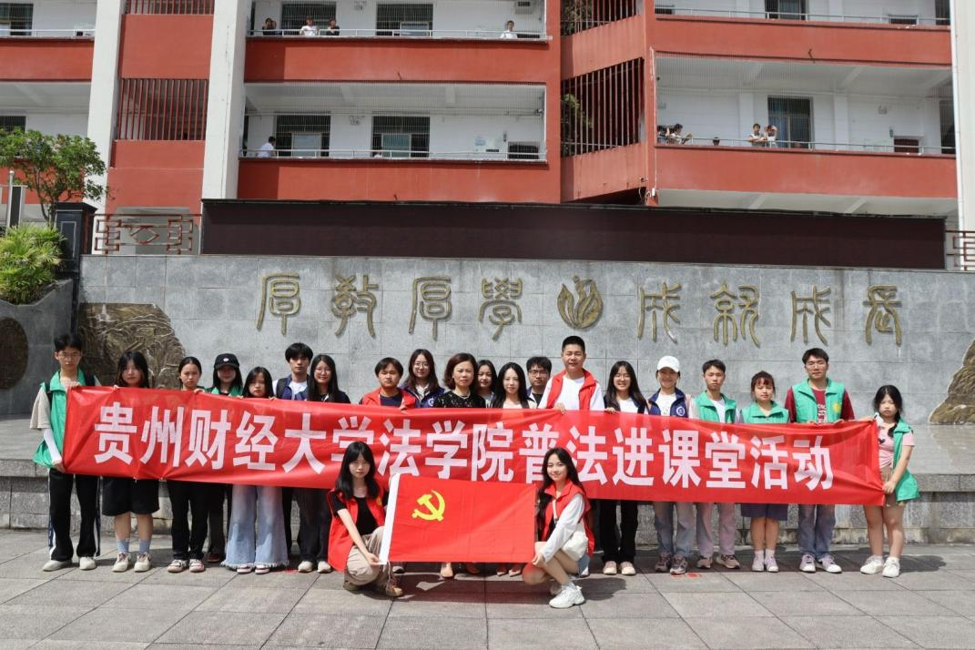 (法学院 李敏 报道|摄影 蒲朝艺)为发挥法学院在法治宣传 教育中的突出作用,增强我院学生的社会服务意识和社会责任感,增强中小学生法治观念,筑牢校园安全防线,7月4日,法学院“三下乡”实践团队走进桐梓县第五中学、逸夫小学分别开展以预防未成年人犯罪、反校园霸凌为主题的“普法进课堂”宣讲活动。