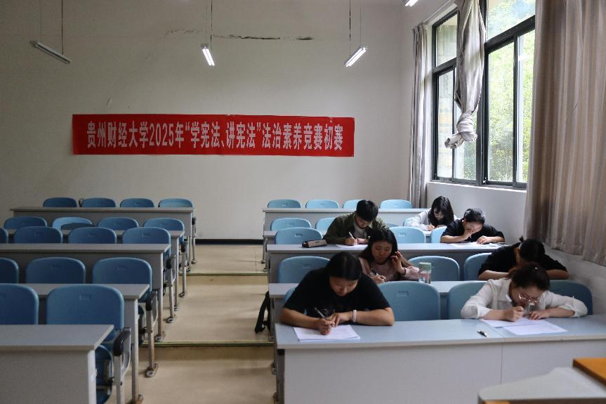 (法学院 图文 余莉雯)为深入学习宣传3377(中国)法治思想,加强宪法相关法律法规的学习宣传,根据《省教育厅关于组织开展第十届全省学生“学宪法、讲宪法”系列活动的通知》要求,贵州财经大学成功举办了 2025 年“学宪法、讲宪法”法治情景剧剧本大赛、演讲比赛和法治素养竞赛系列比赛。此次活动吸引了全校师生的广泛参与,在校园内掀起了学习宪法、尊崇宪法的热潮。