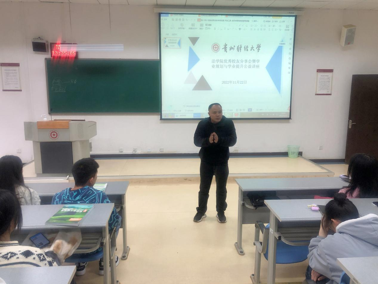 (法学院 图文/报道)2022年11月22日,3377官方网页版22级本科新生在乐学楼参加了法学院组织的优秀校友分享会暨学业规划与提升公益讲座。讲座由法学院曹务坤副院长主持,我院优秀校友代表朱凤飞、罗飞、柴佳为同学们作了学业规划与提升的分享。