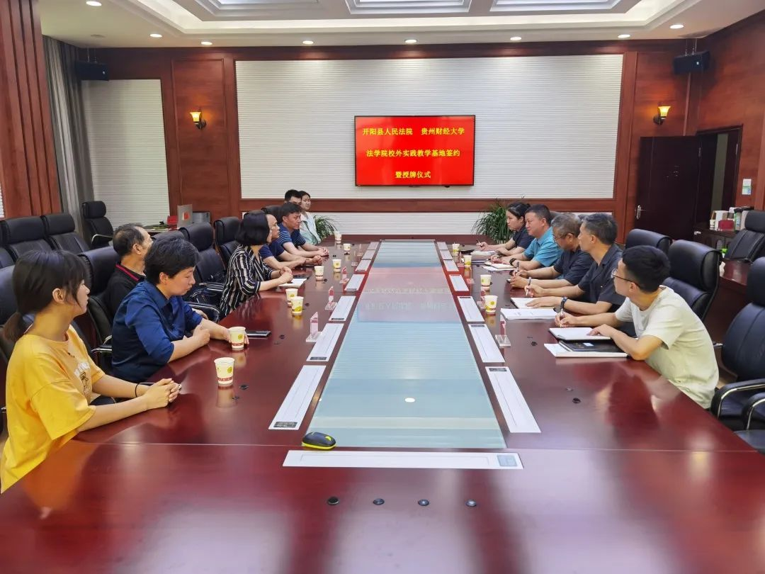 (法学院 图文/报道 何鹏 王振华)2022年7月4日,法学院与开阳人民法院举行校外实践教学基地授牌暨签约仪式。开阳人民法院党组成员、副院长吴明江,党组成员、副院长冯华江,党组成员、政治部主任罗黔龙及相关部门同志,法学院党委副书记、院长陈玉梅,党委委员曹务坤,院系本科教学督导慕德鸣等参加仪式。