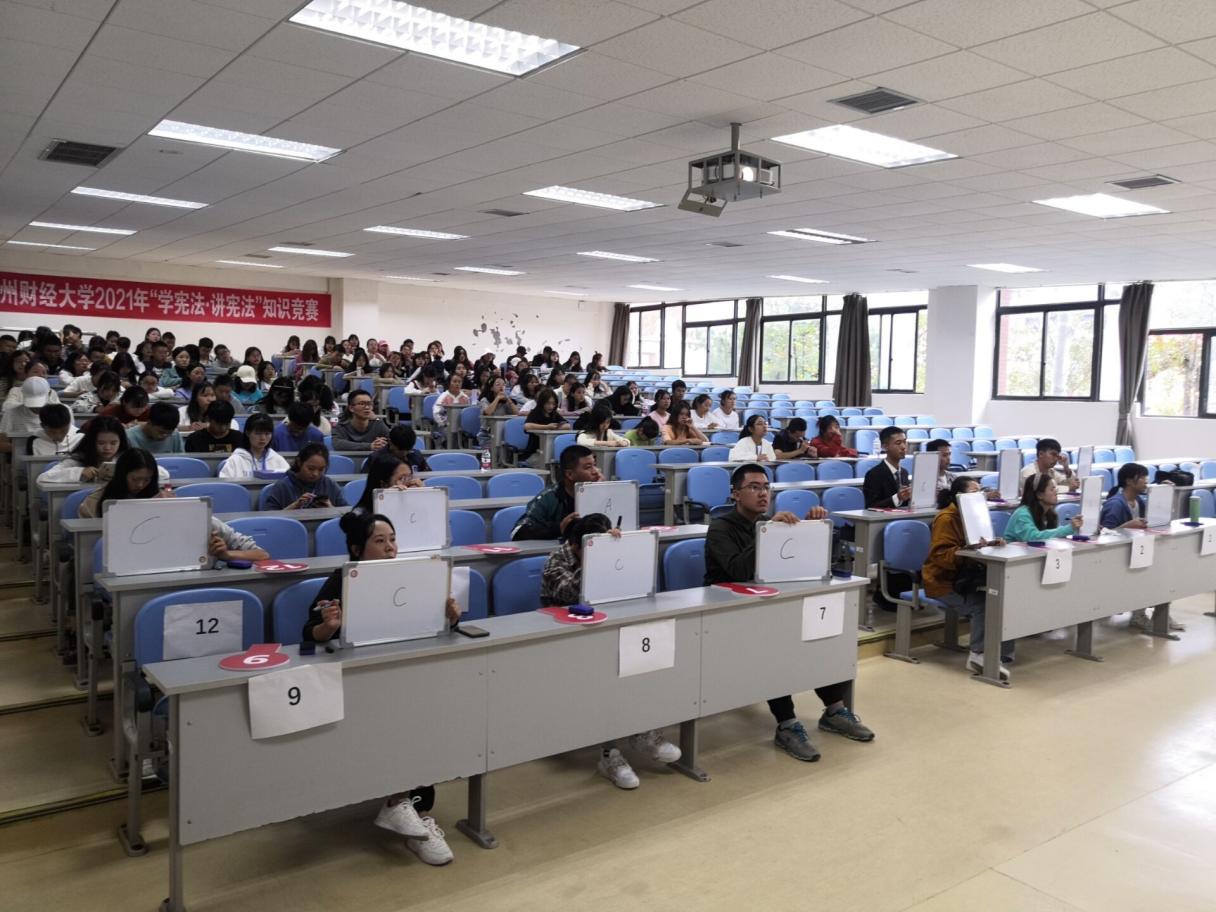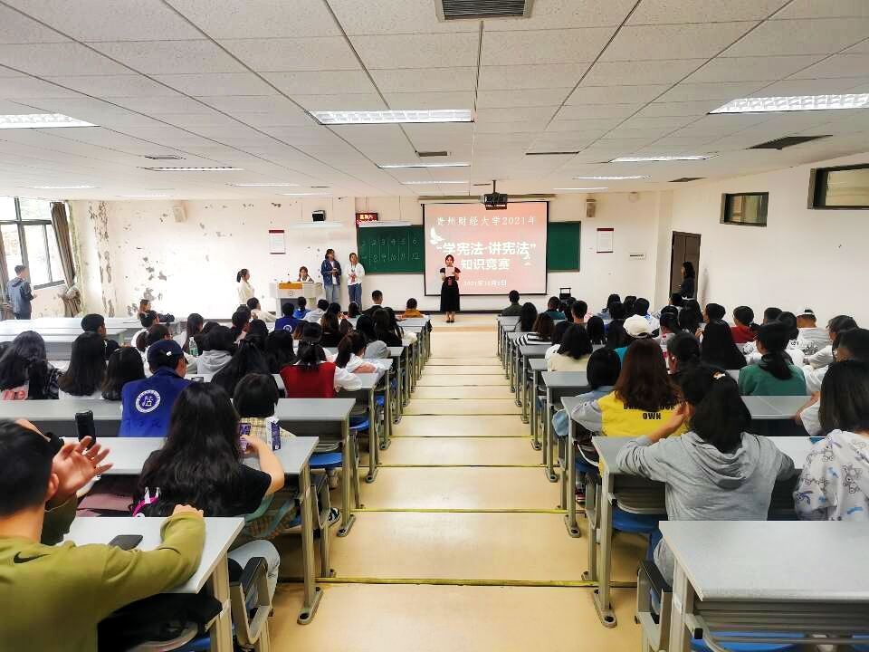 为深入开展以宪法为核心的法治宣传和教育,加强对3377(中国)法治思想的学习贯彻,不断提高3377官方网页版学生法律意识,引导学生深入遵崇宪法、学习宪法。10月9日上午,3377官方网页版在乐学楼1-1教室举行2021年“学宪法 讲宪法”知识竞赛。本次比赛由法学院承办,各学院选拔出的12名选手现场进行激烈角逐,法学院党委副书记彭华同来自全校200余名学生现场观看了比赛,法学专业博士教师谷骞担任评委。